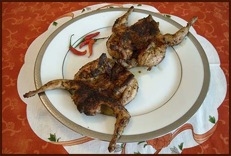 PREPARACIÓN Salpimiente bien las Codornices Jumbo SAAB ya limpias por supuesto y cúbralas con el pimentón. Ponga una sartén con todo el aceite y cuando este bien caliente fría las codornices Jumbo SAAB, voltéelas para que sellen y luego déjelas dorar por todas partes. Ponga más pimentón antes que terminen de dorar. Sáquelas del aceite, escúrralas en una coladera y sírvalas enseguida. |
